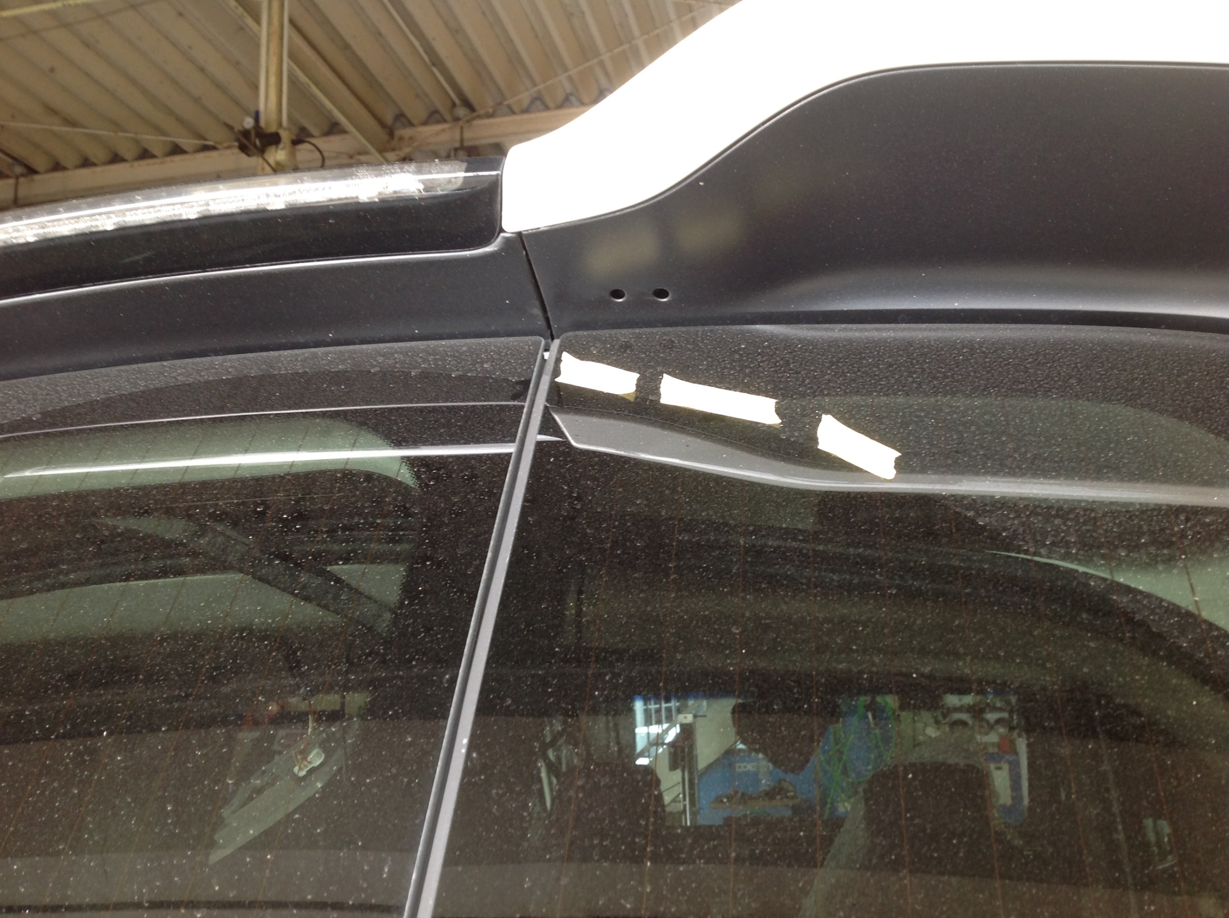 ステップワゴンさん特有の、わくわくゲートのガラスウインドウを跨いで拭き取るんですね。