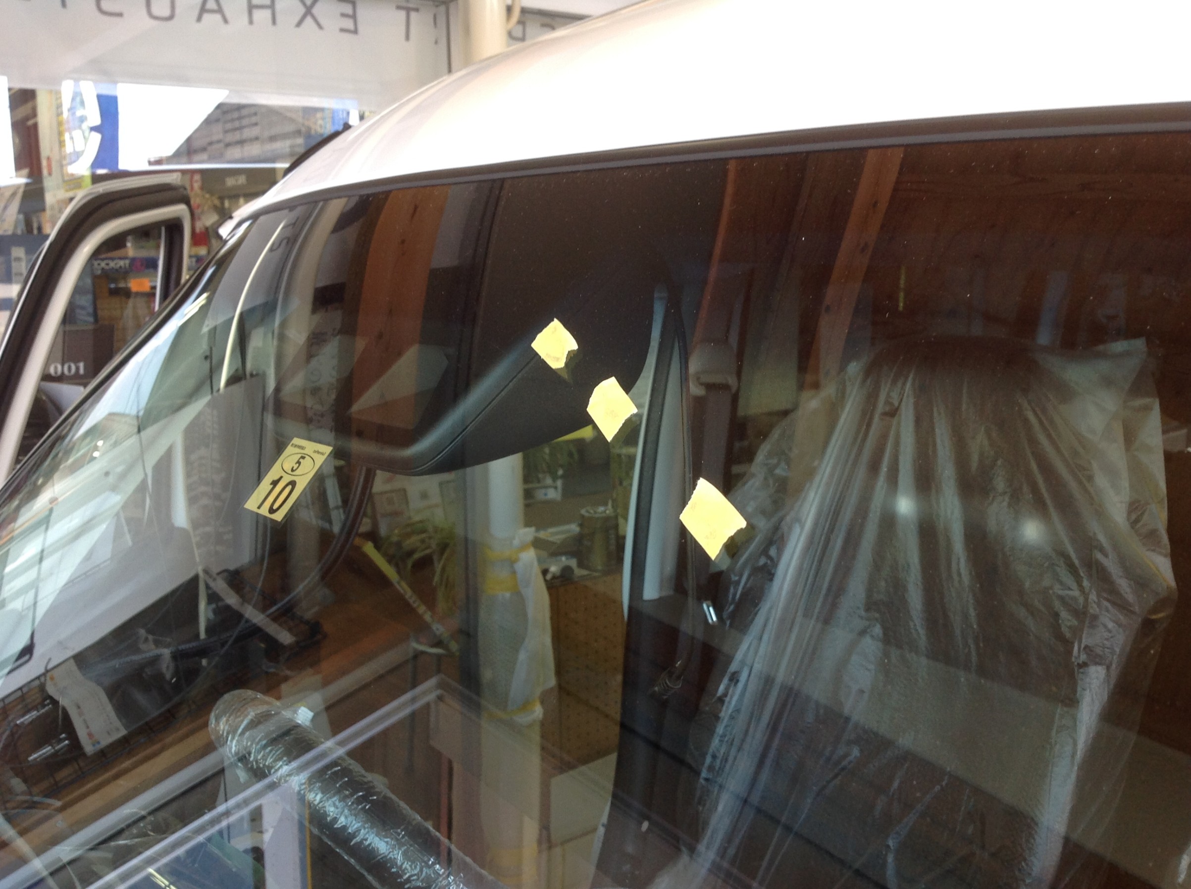 フロントまで配線を処理し、ワイパーふき取り位置の確認 ♪