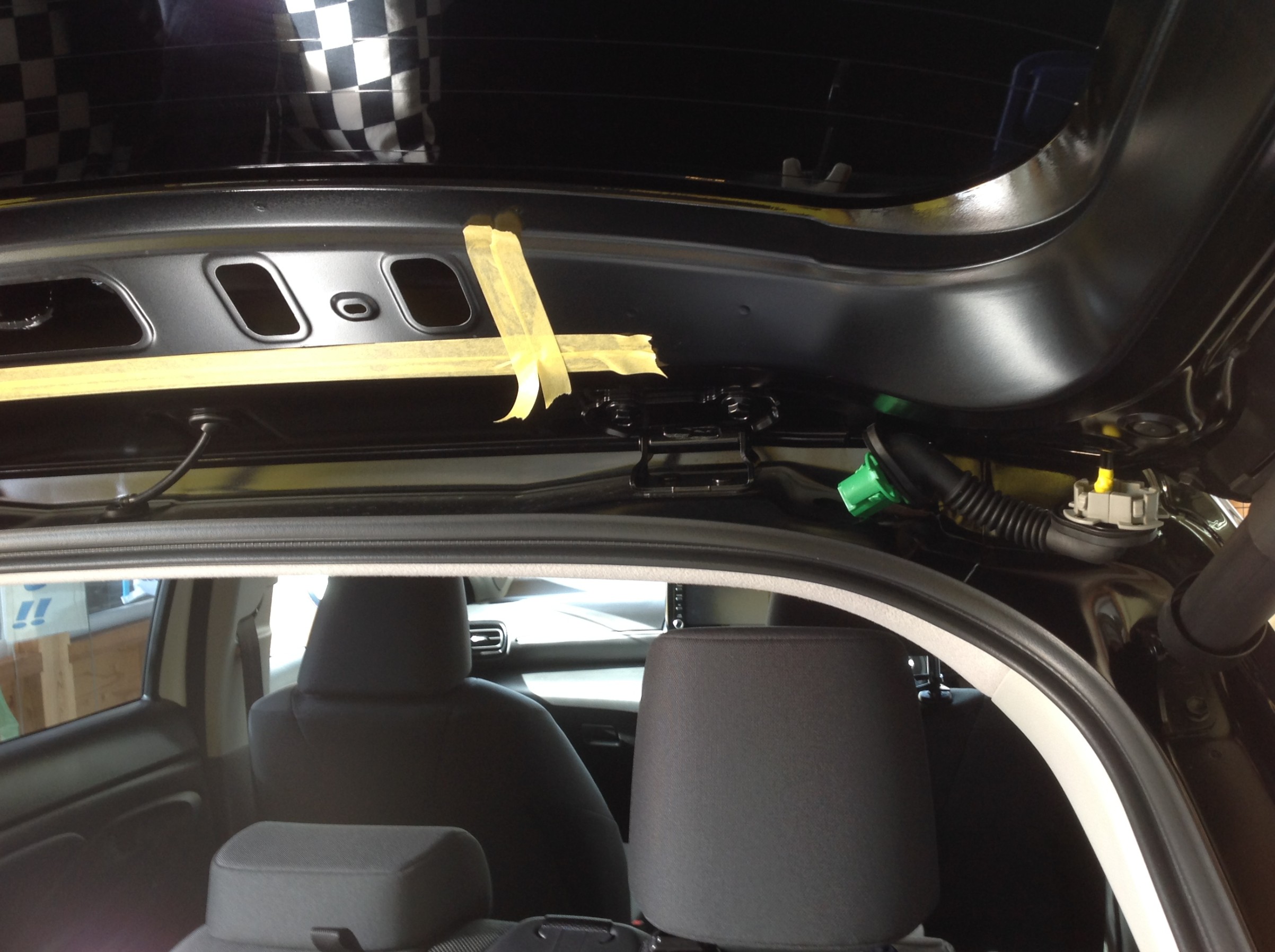 リアカメラの配線を車内側からリアゲートへ引き込み、リアカメラを装着 ♪