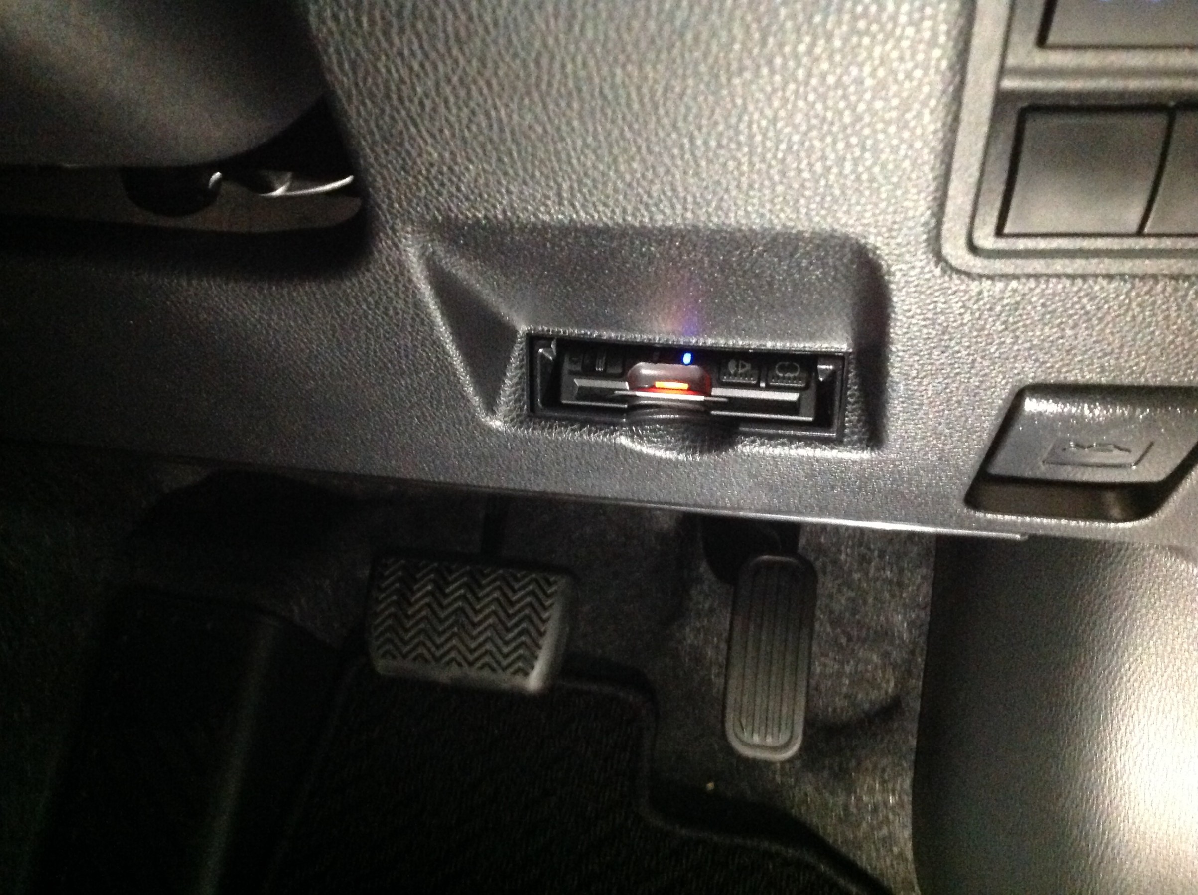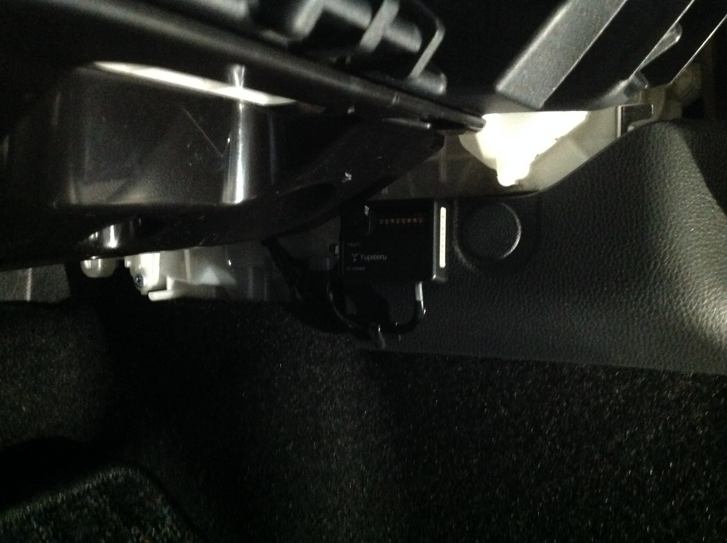 電源を確保し、駐車監視ユニットを足元に装着 ♪