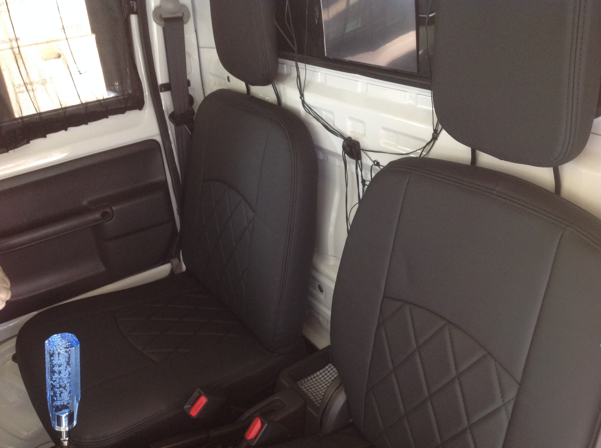 軽トラックや箱バン系は、シートを降ろしての作業の方が効率が良いかも ♪