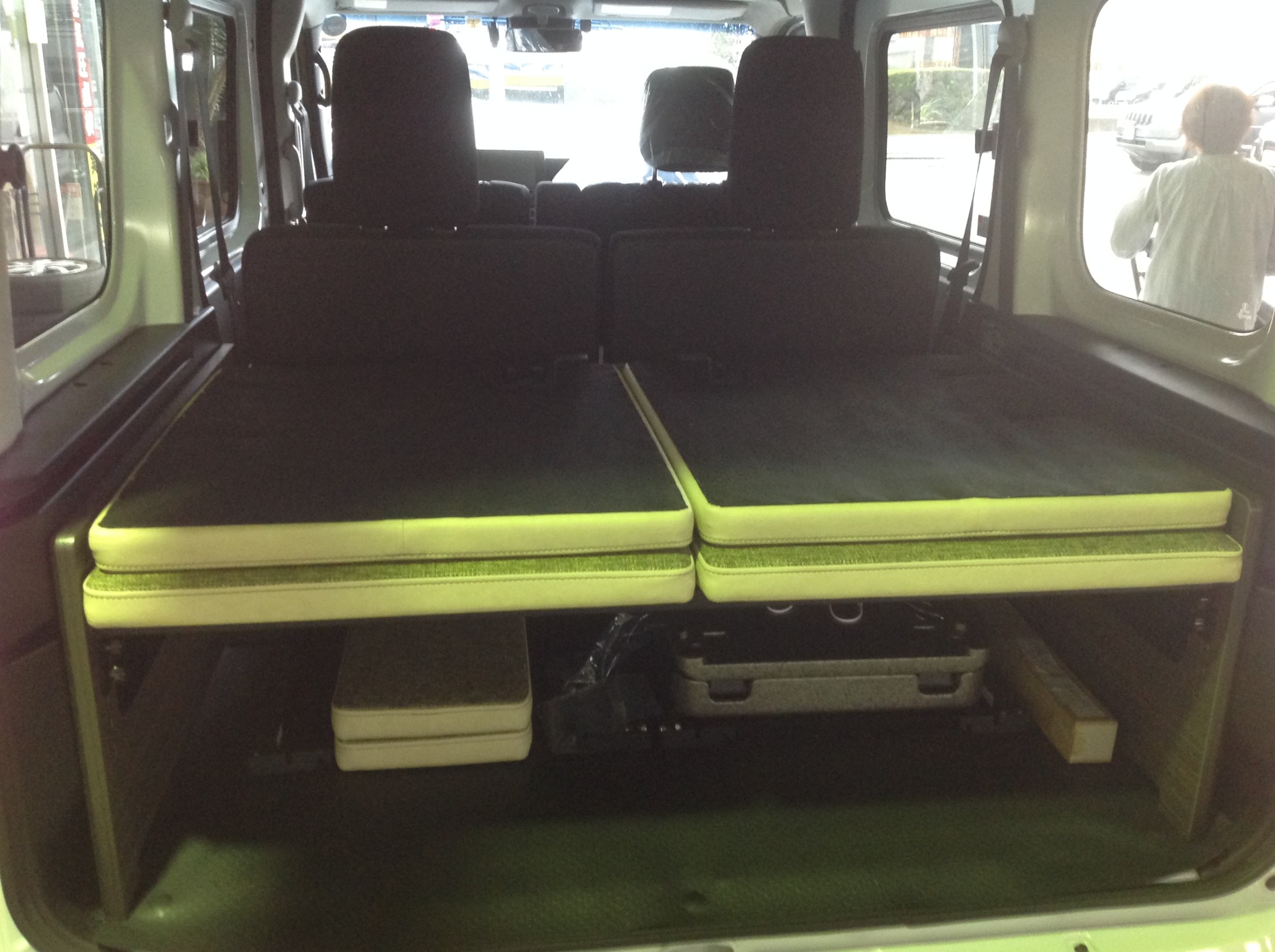 まずはリアドラレコの配線取り回し上、お客様が組み立てられたベッドキットを