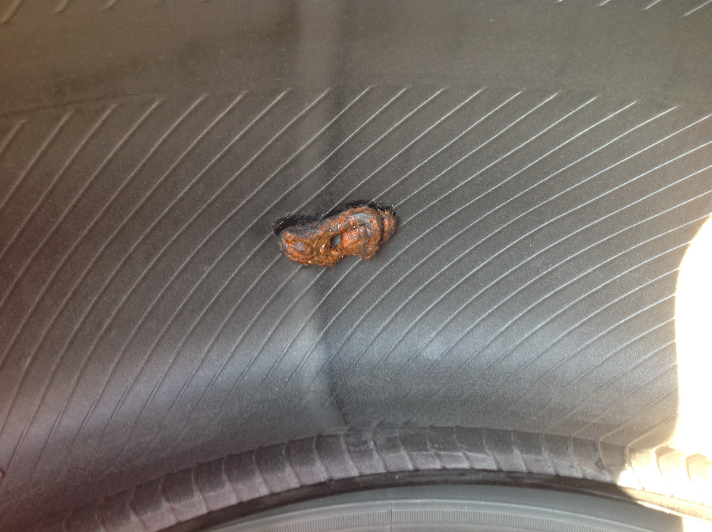 雨上がりにカチカチ鳴るのでタイヤを見てみたら、ビスが刺さってたので抜いて走ってみた