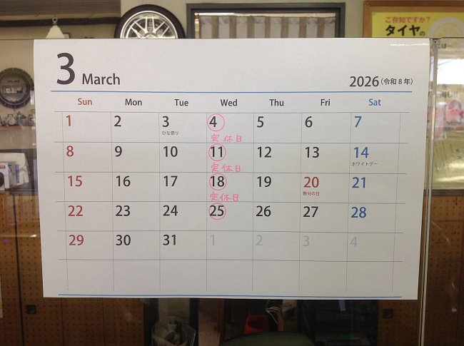 3月の定休日のお知らせです ♪ 3月4日(水)、11日(水)、1...