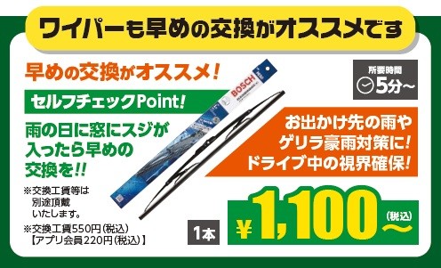 ①ワイパー:普段目立たない存在ですが、梅雨の季節は大活躍!