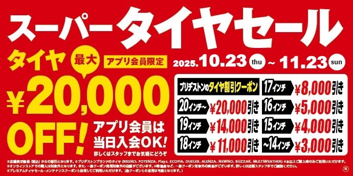 10/23より開催中のスーパータイヤセール!履き替えシーズンという事もあり盛り上がっております!