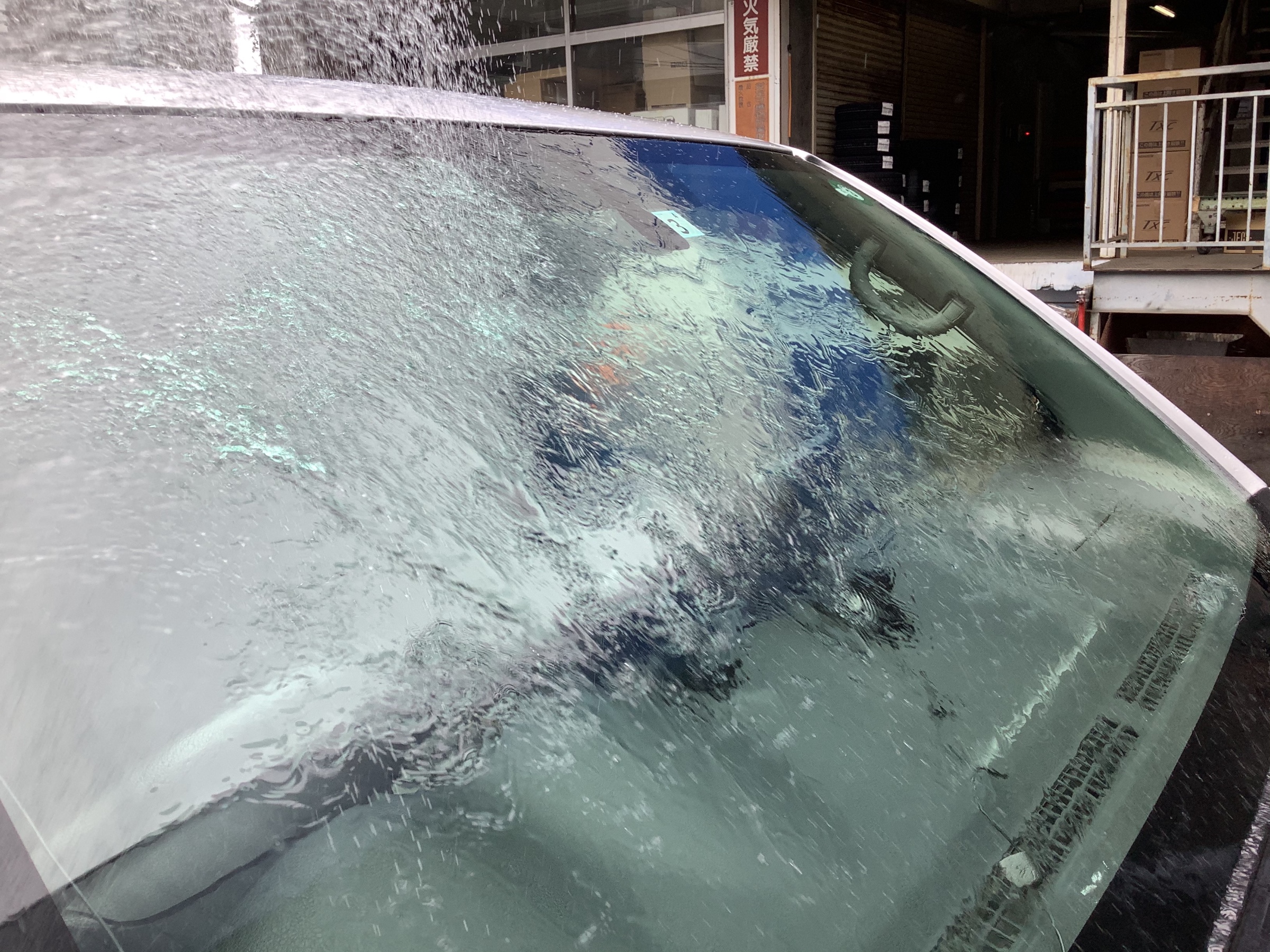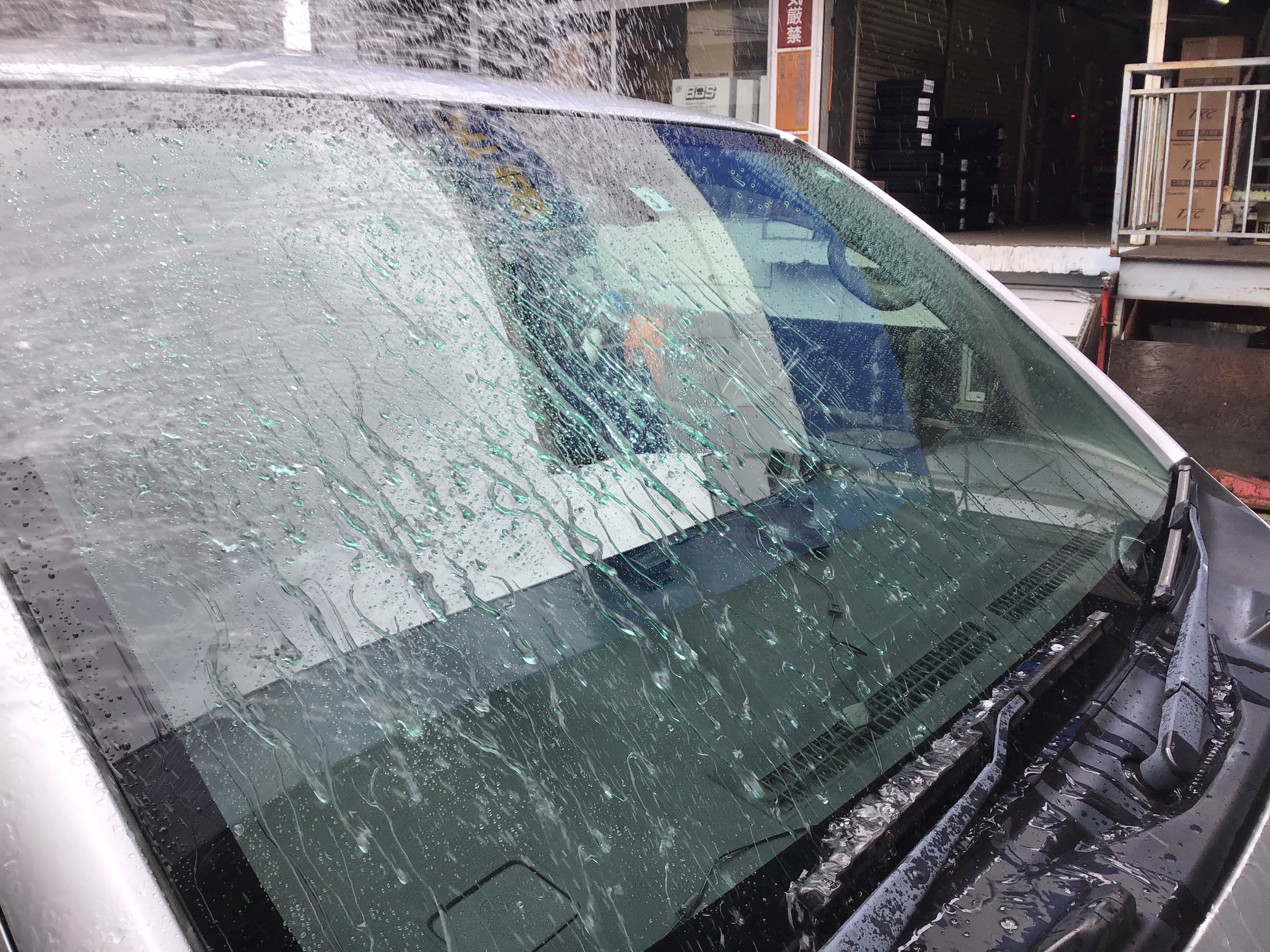 こちらが施工後です。水が弾いてころころ落ちていきます♪ワイパー一拭きで良好な視界を確保出来ます。