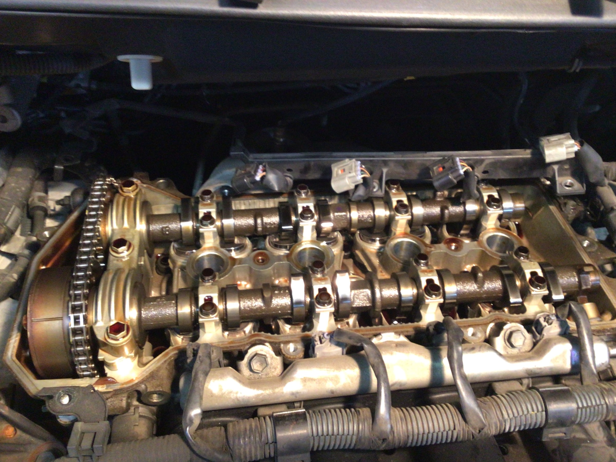 タペットカバーを外したエンジンの様子がこちらになります。