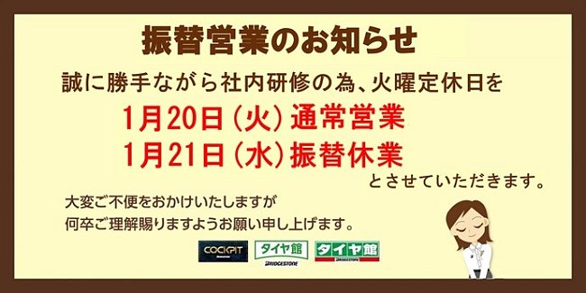 明日は火曜日ですが営業します。