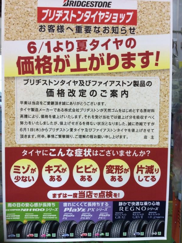 ブリヂストンを含めて各メーカーが一斉に値上がりするようです。