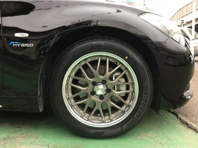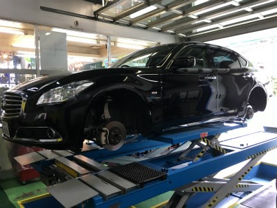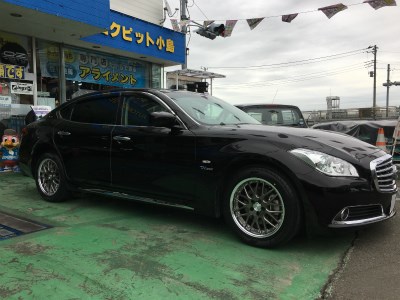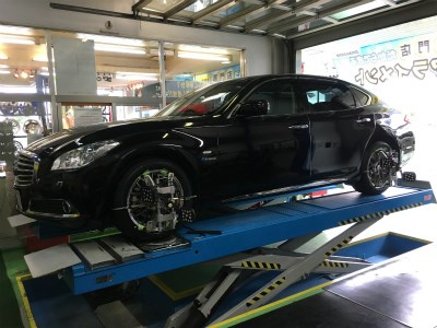 日産シーマ ハイブリッドにタイヤ・ホイールセットとアライメント、
