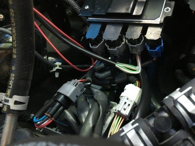 まずはエンジンルーム下のハーネス 二か所に割り込ませ、