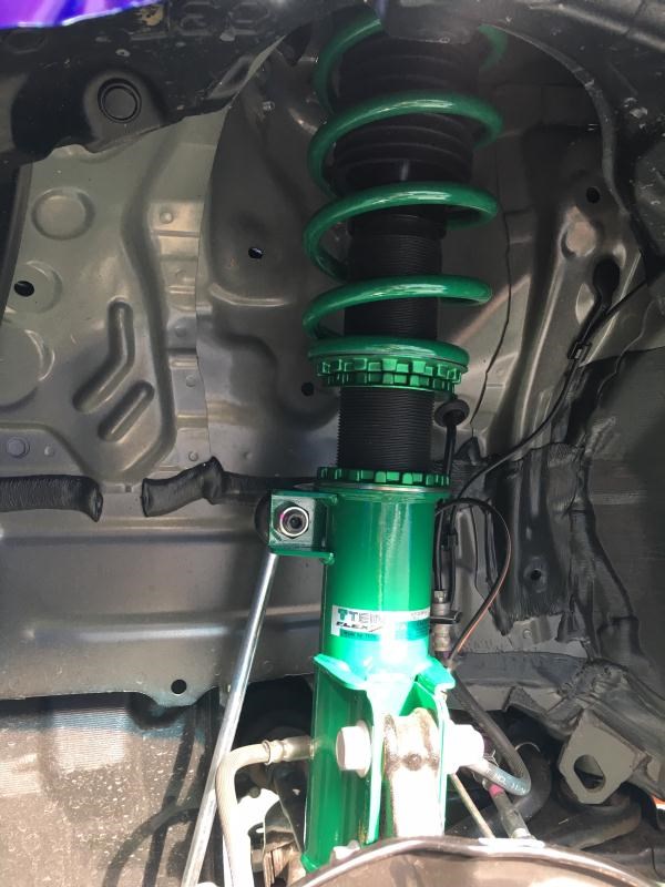 純正サスショックを取り外し、TEIN車高調を取り付けます。
