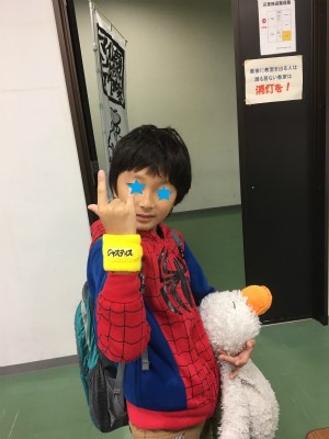 平塚のららぽーとにて。スパイダーマンの格好をして