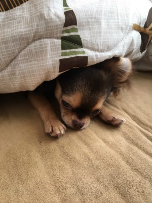 最近朝晩は冷えますが、うちのチョコはどうも寒がりみたい。
