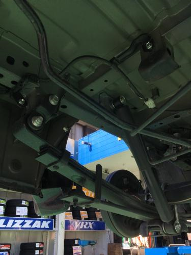 作業前の写真を見るとリアにはデフと板バネしかなく、スタビはもちろんボディ剛性を向上するようなパーツもほぼ付いていないのが現状です。