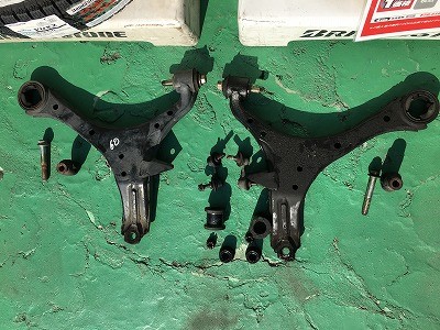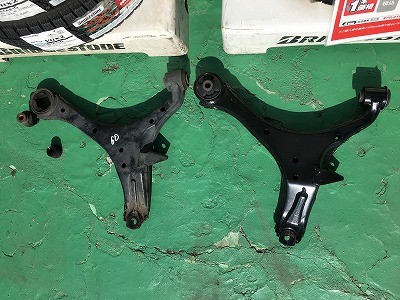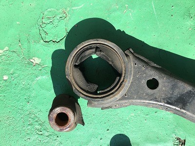 まずはロアアームを交換。外した写真です。