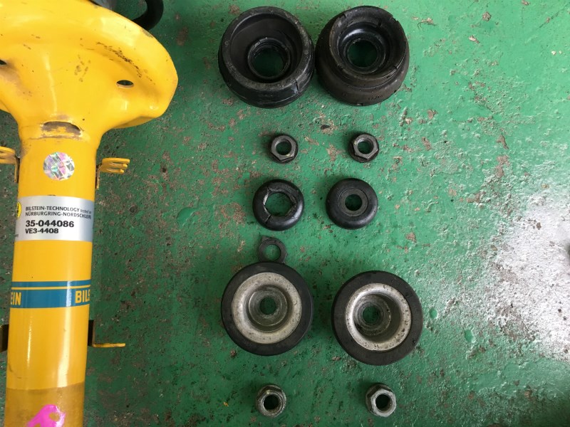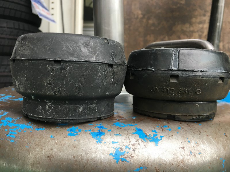 アッパーマウントブッシュ左が新品、右が取り外したものです。