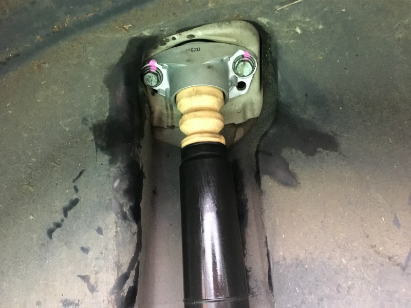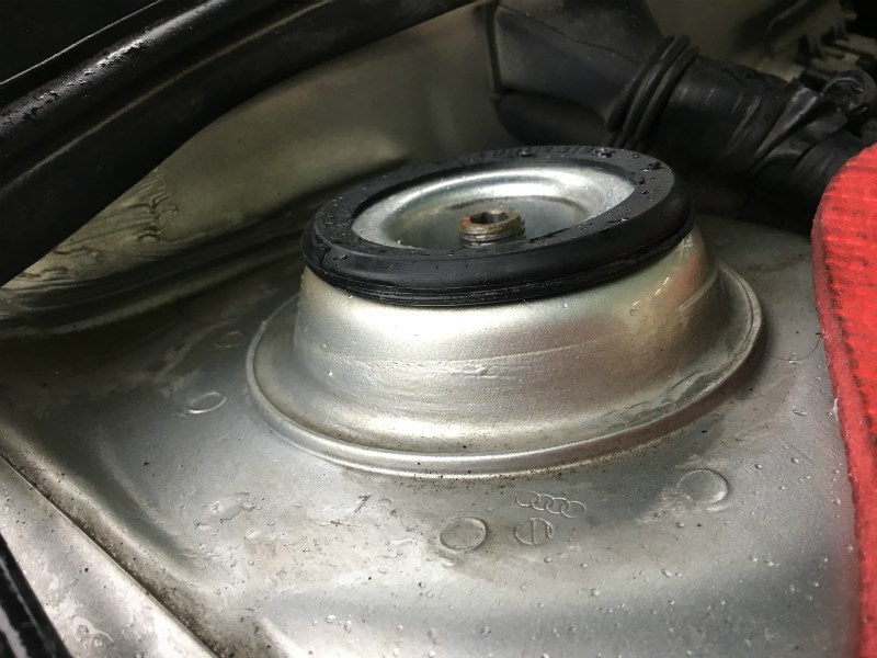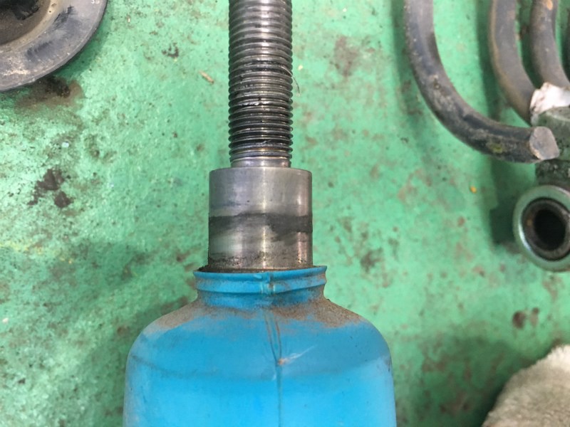 フロント右のショックを取り外した所、アッパーマウントベアリングが