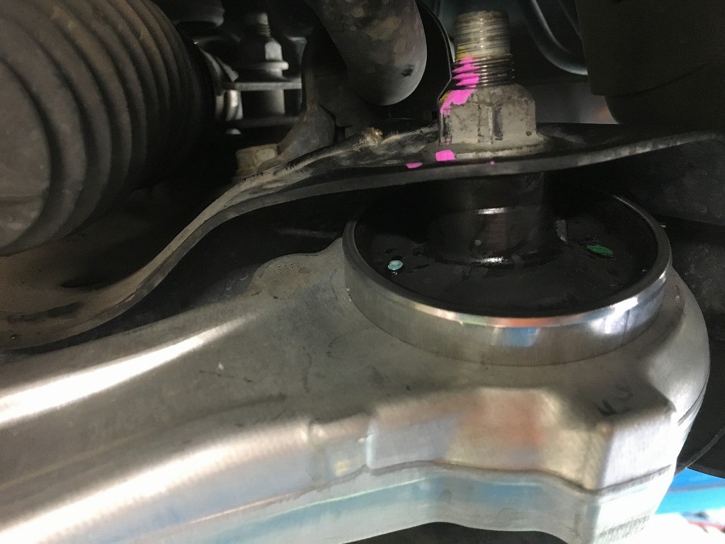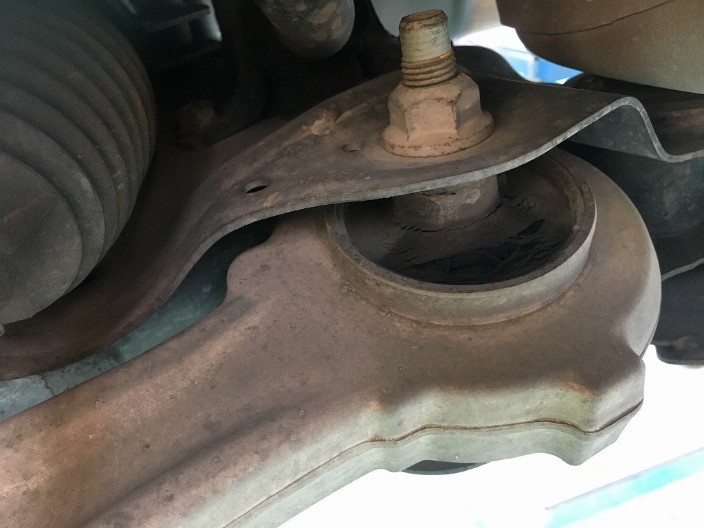周辺の足回り関係も点検していると、ロアアームブッシュが
