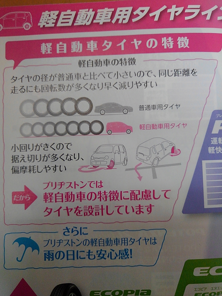カタログから抜粋・・・軽自動車のタイヤは普通車のタイヤより外径が小さい為、