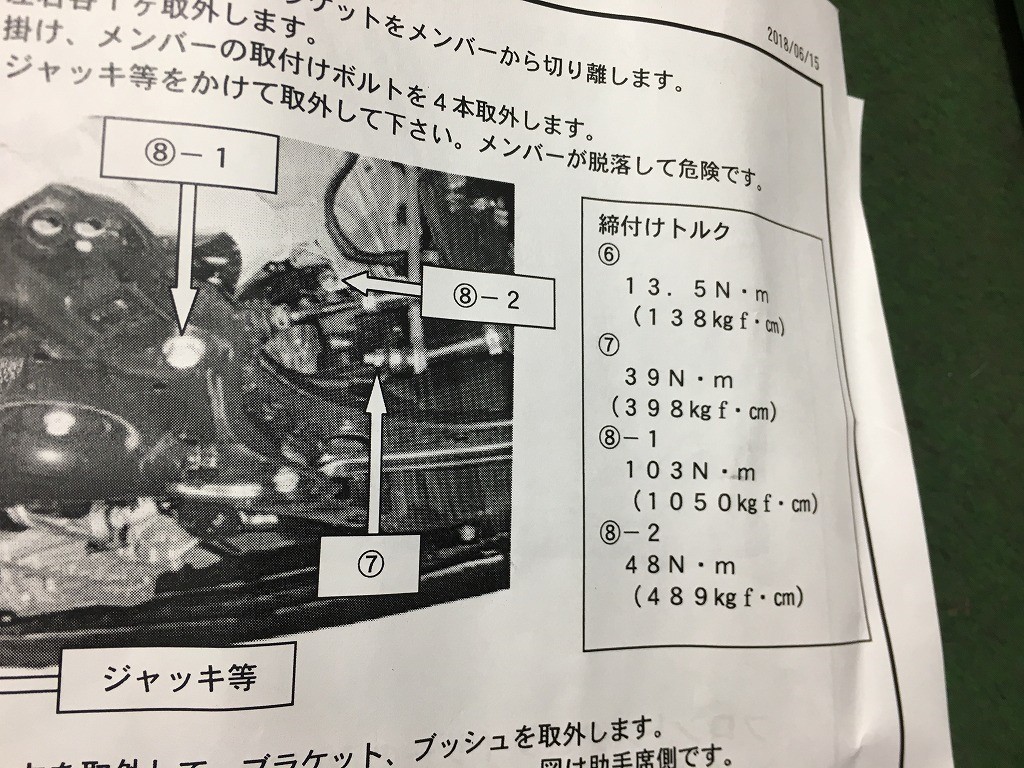 一通り装着と締め付けが完了しましたら、リフトから下し、