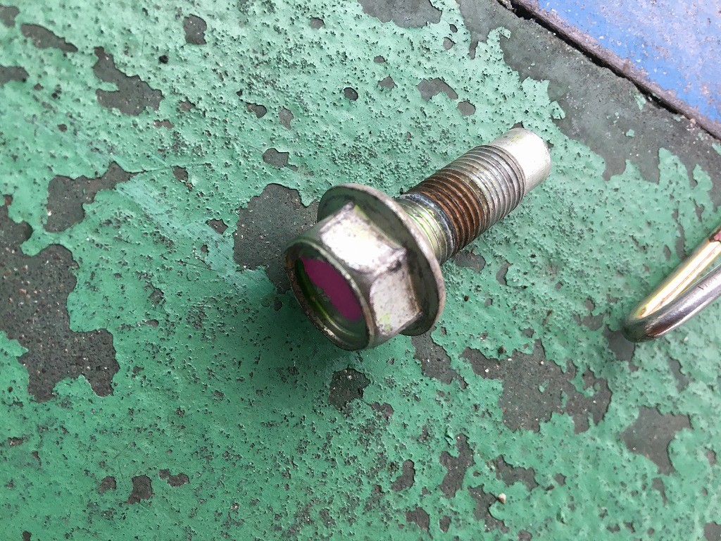 ボルトの頭にピンクのマーカーチェックを入れているのは