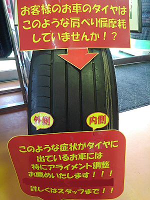 1の片減りはタイヤの装着している角度がズレている場合が考えられます。