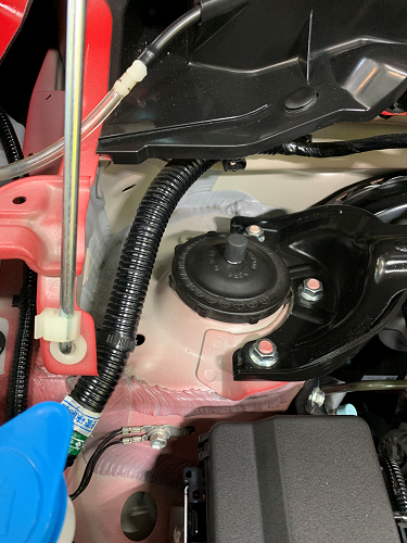 アッパーマウントはゴムキャップがついていましたので、減衰ダイヤル分穴あけをして見た目も操作性も良くなりました。