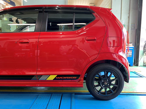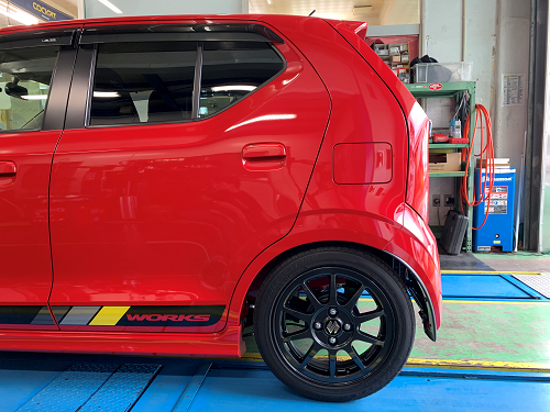 さて、先日当店にて現行型スズキのアルトワークスに、車高調をお取り付けさせて頂きましたので作業紹介をさせていただきます。