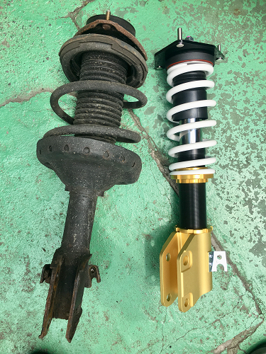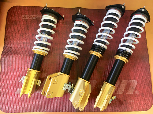 フロント、リアの車高調をお取り付けして作業完了いたしました。