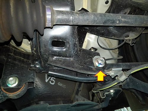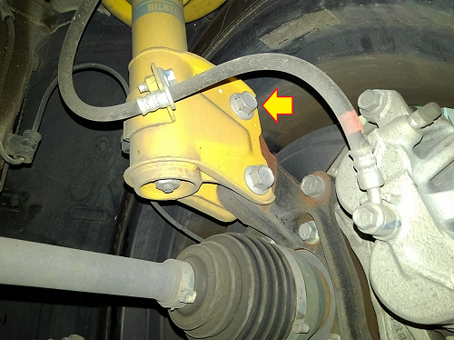 フロントのキャンバーは偏心ボルトになっているここで調整できます。
