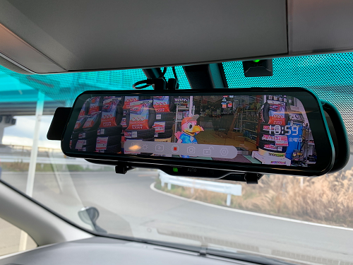 また、後方確認がしづらいとのことで、ルームミラーモニター型ドライブレコーダーもお取り付け致します。