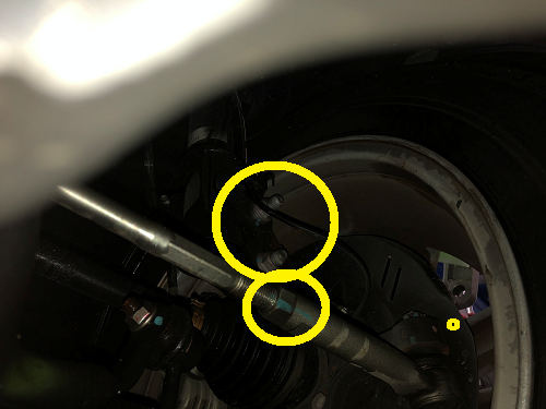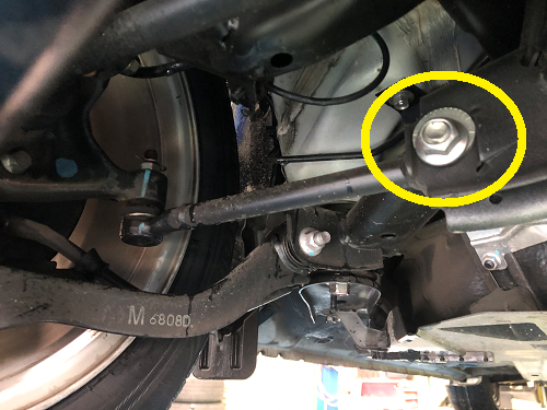 ↓フロント:キャンバー角(上・偏心カム)トゥ角調整(下・タイロッド)