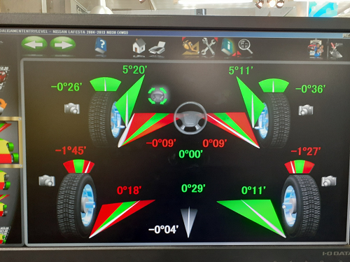 4WDなのでリヤはキャンバー・トゥ角が調整でき、基準値内に収めることができました。