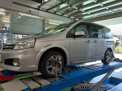 今回はタイヤ交換時に偏摩耗があり、アライメントに至りました。