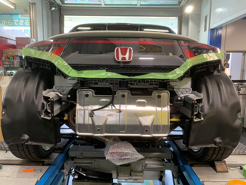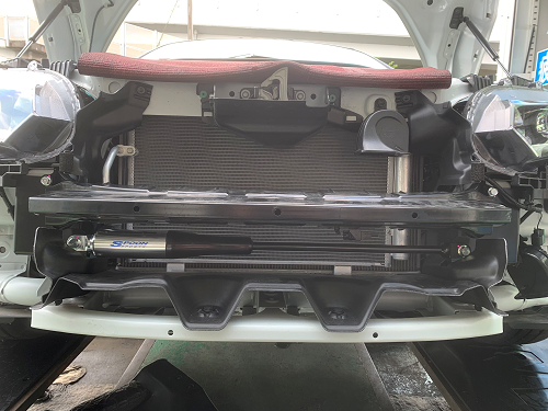 MOTION CONTROL BEAMをお取り付けし、最後にバンパーを丁寧に戻し作業完了です。