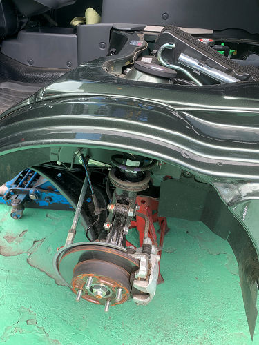 ブロックを塗装したことで、純正の板バネとバンプの色が同じになり後付け感がなくなったかと思います。