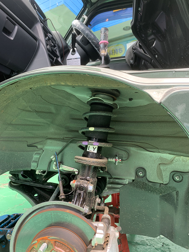 フロントのショックを取り外し、今回お取り付けする商品は「轟(とどろき)」製になります。
