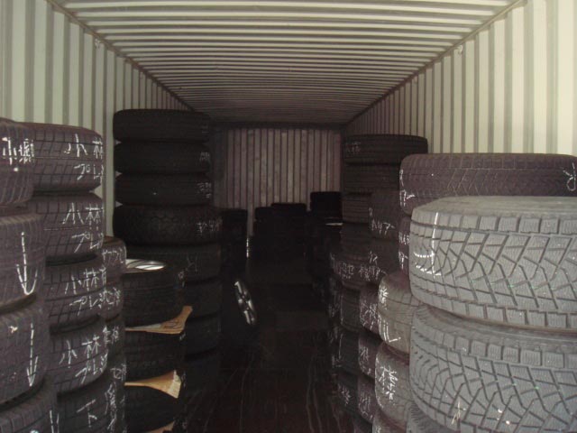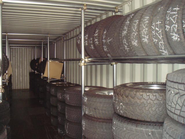 で、さっそくコンテナの中のタイヤを外へ出し、作業開始!