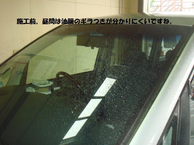そうです、僕の愛車のフロントガラスは油膜でギラギラ・・・。