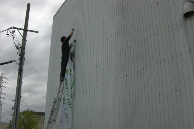 2011年7月20日 ツイート 皆さんお元気ですか?スタッフの桑原です。暑い夏を前に今回の台風は各地に被害を出し速度も遅くやっかいな台風でしたね。当店ものぼりなど小さな被害を受けました。午後になり回復の兆しだったので山本君と横幕の交換を行いました。暑い夏本番ですが車のメンテナンスも忘れずにネ! Prev Next