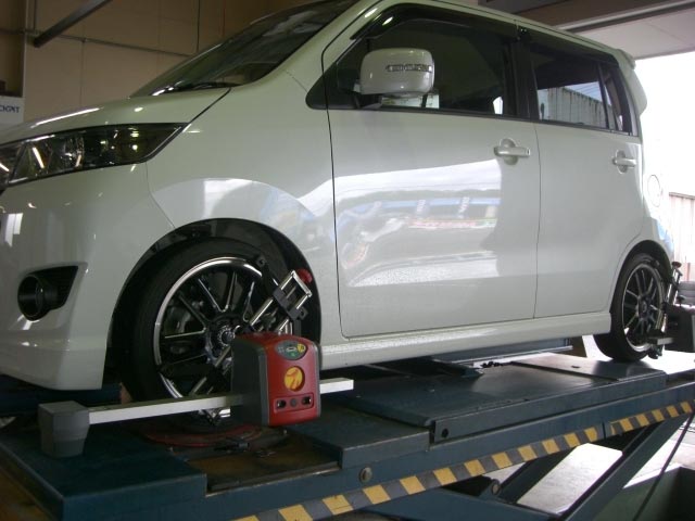 2012年9月9日 ツイート 本日のアライメントはワゴンRスティングレーです。以前TEINのダウンサスを装着させていただいたお客様です。車高の変化でアライメントがくるってしまいますので、足回りをさわったらアライメント調整!おすすめです! Prev Next