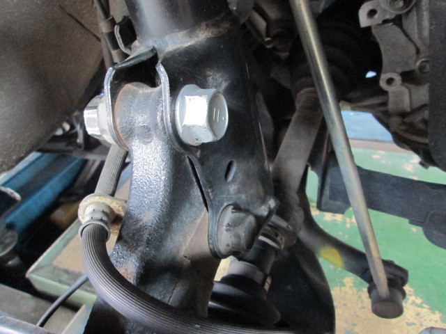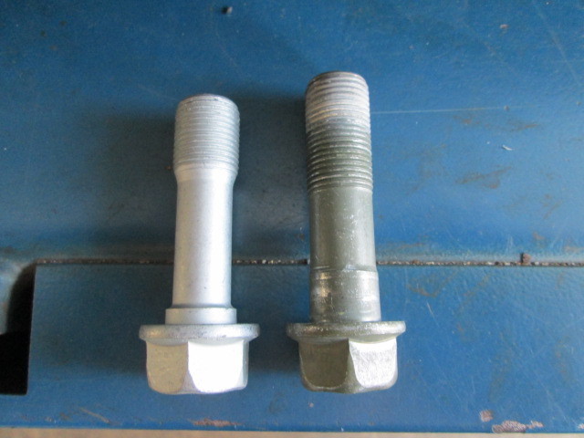 使用しましたのは、トヨタ純正部品のキャンバー調整用ボルトです。こちらを使用することによって純正ショックアブソーバでもキャンバー角が調整できます。標準ボルトよりもやや細身で、この細身の分でキャンバー角を調整できます。