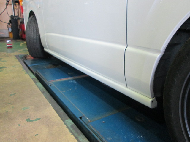 お待たせいたしました。やっとこさのエアロの取り付けです。