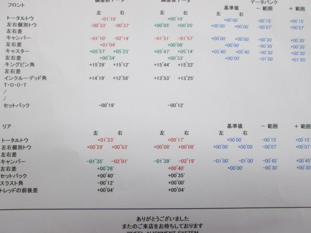 今年1発目のアライメントは、