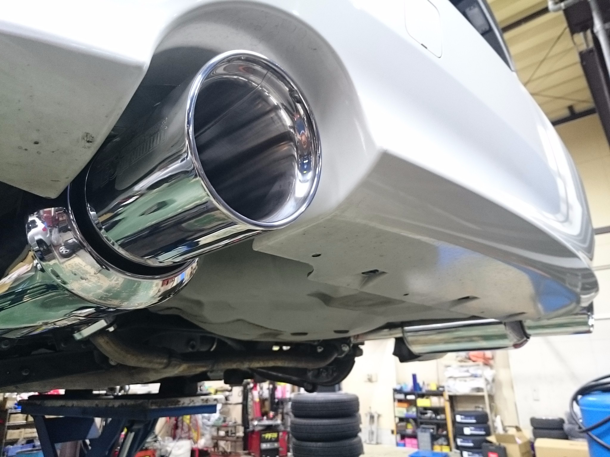 さてさて、タイヤのつけ替え作業の傍らで、車高調とマフラーの交換です。