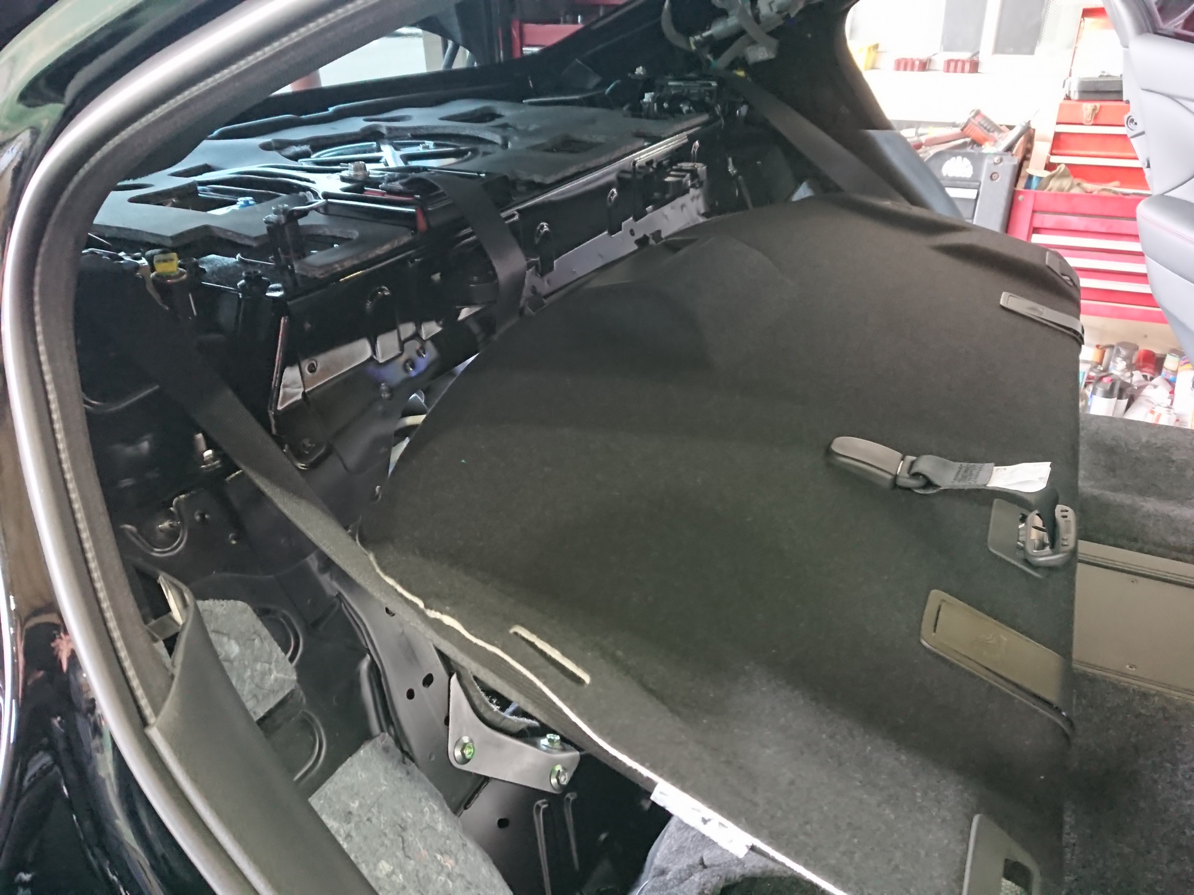 まずは、少々面倒なリヤシート回りをバラシていきます。