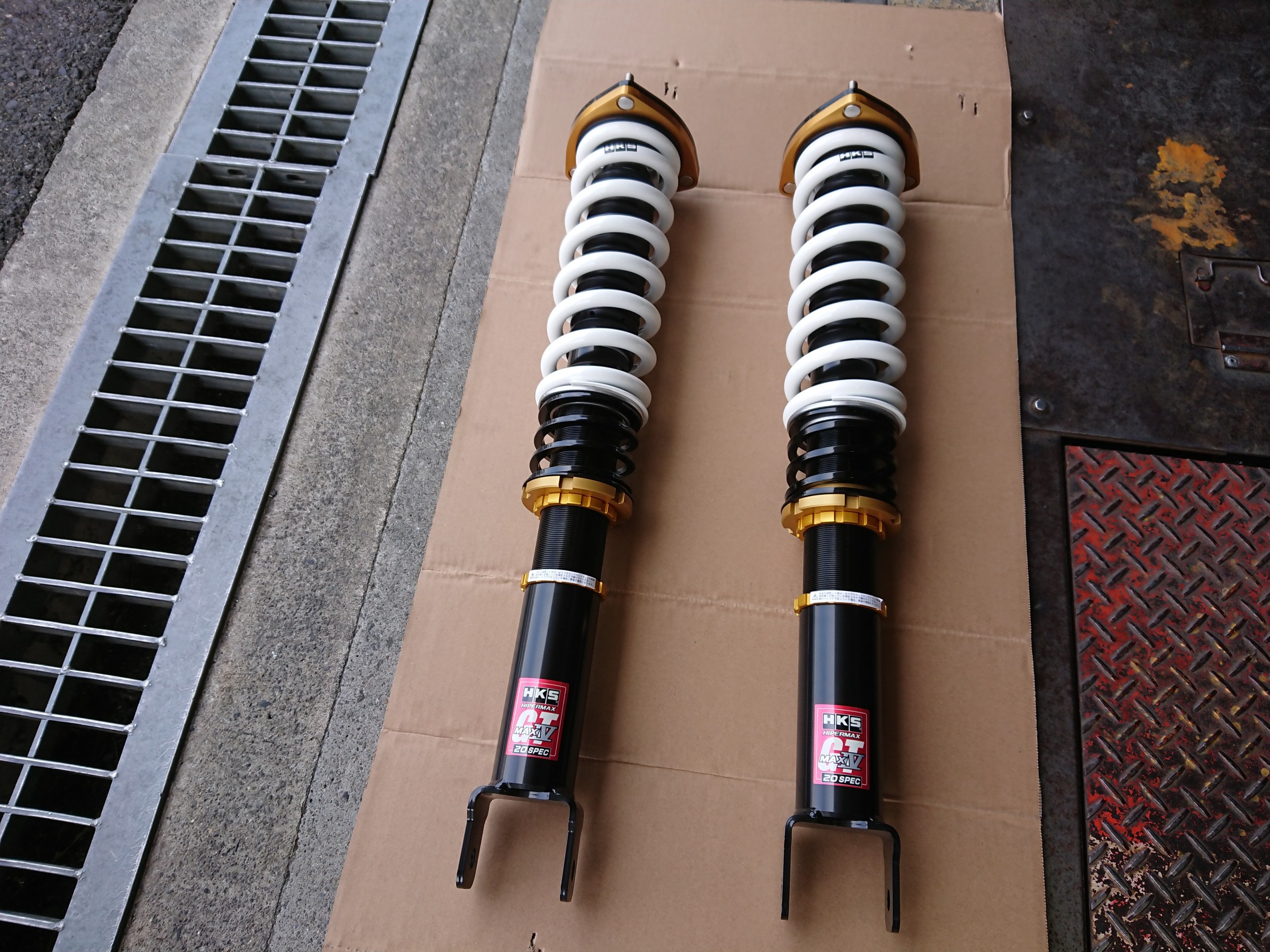 本日の車高調の取り付けは、HKSの『ハイパーマックス MAXⅣ GT 20SPEC』になります。