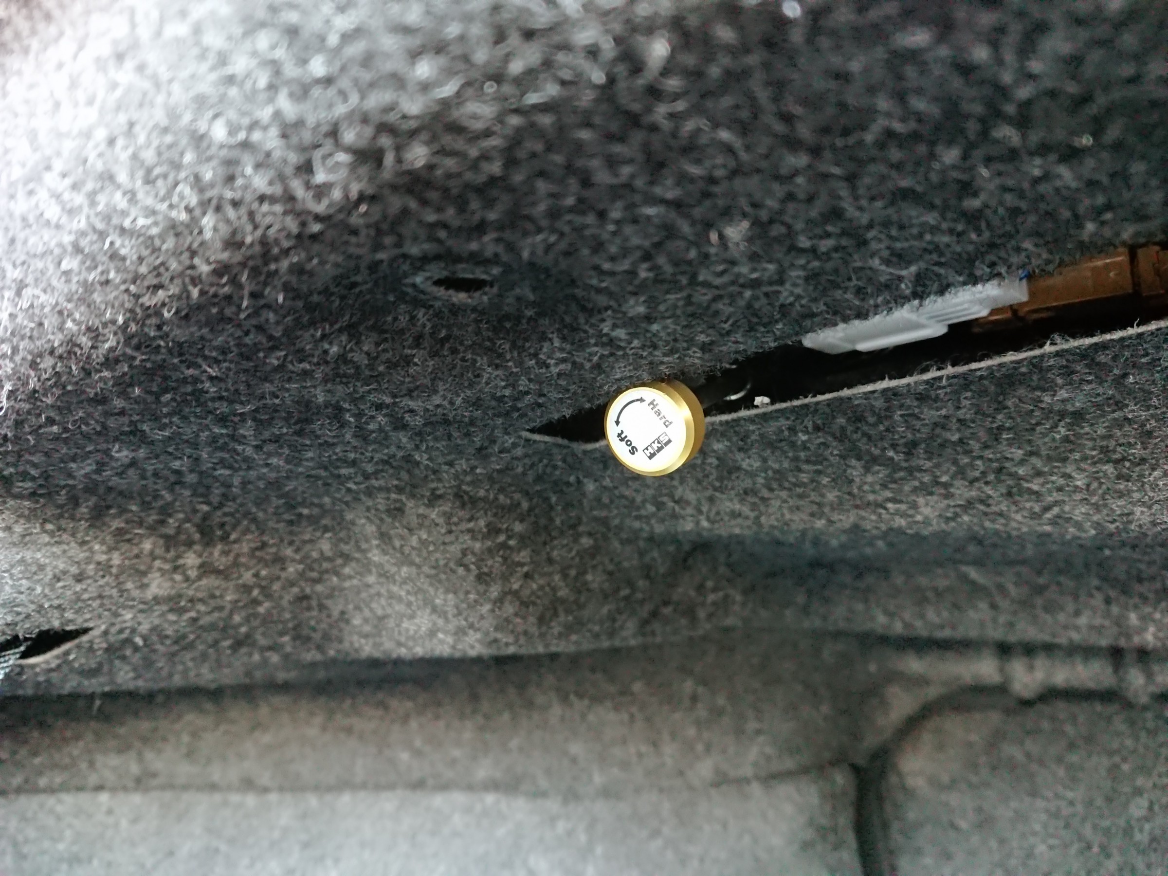 減衰調整ハーネスをリヤトレイからトランクルームに出して調整します。